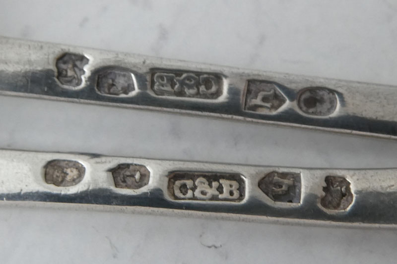 A pair of Victorian Onslow pattern salt ladles, by Francis Higgins London 1886 and 1887 (additionally struck with the import mark used in Vienna between 1872 and 1901), initialled {MST} . Price: £110.00 |