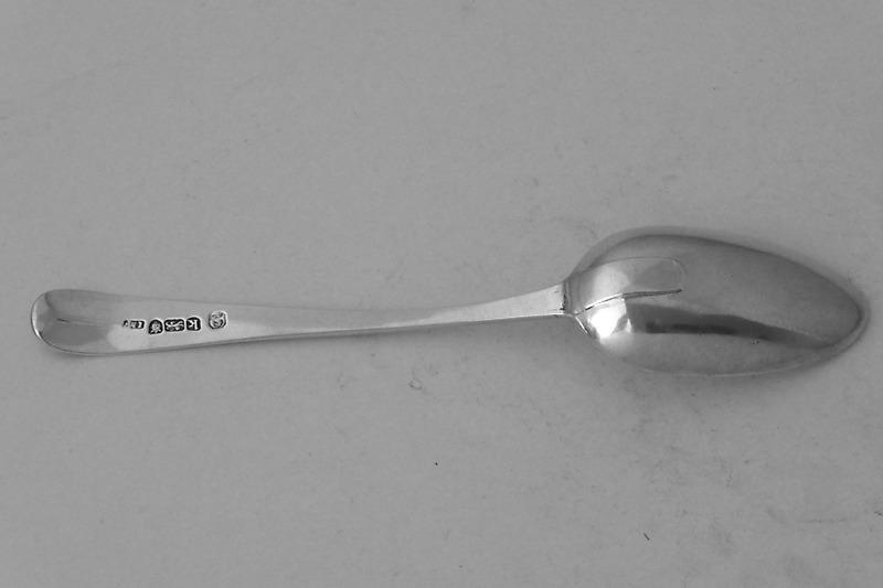A brightcut dessertspoon, by Charles Hougham London 1790, initialled {JW JB}. Price: £65.00 |