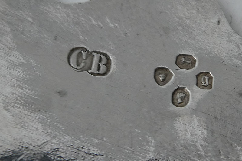 A George III wine label with thread-edge border engraved for WHITE WINE, by IW of Chester (John Walker of Chester or Joseph Walley of Liverpool) , c. 1800. Labels by Joseph Walley of Liverpool (d. 1801) are recorded. If it is by him the shape would suggest that it was a late example of his work. The other candidate for this mark is John Walker of Chester. He was the son of George Walker I of Chester and was born in 1782. John was made a member of the Goldsmiths' Company of Chester in 1808, having been apprenticed to his father, and succeeded his father as Assay Master on the latters death in 1809 (although he did not swear the oath of that office until 1819). In 1825 Walker described himself as Secretary (as well as Assay Master) and in 1834 he was admitted to the Company again 'according to ancient use and custom'. In 1840 he appears to have ceased his activities with the Goldsmiths' Company of Chester in the wider disgrace of his family. It certainly seems dubious for the son of the Assay Master (if this label were 1808-1809) or the Assay Master himself, if this label were made after 1809, to be avoiding assaying charges. John Walker is only known to have assayed four labels in his career and the whereabouts of these are currently unknown. |