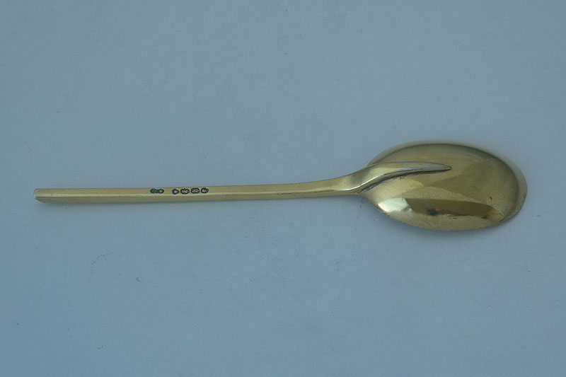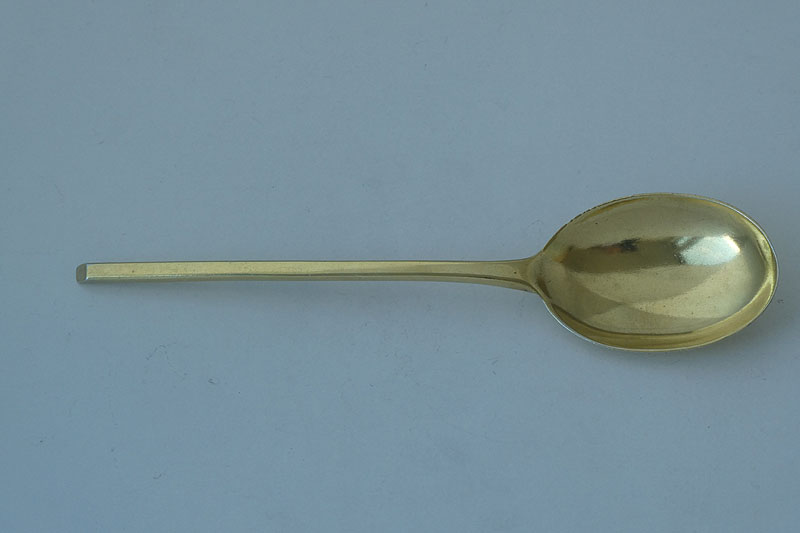 A Victorian silver-gilt slip top spoon with rat-tail made in London in 1863 by William Stocker. Price: £165.00