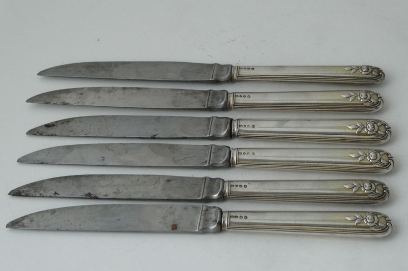 A set of six George III tableknives with Old Sheffield Plate handles, circa 1790. Price: £195.00
