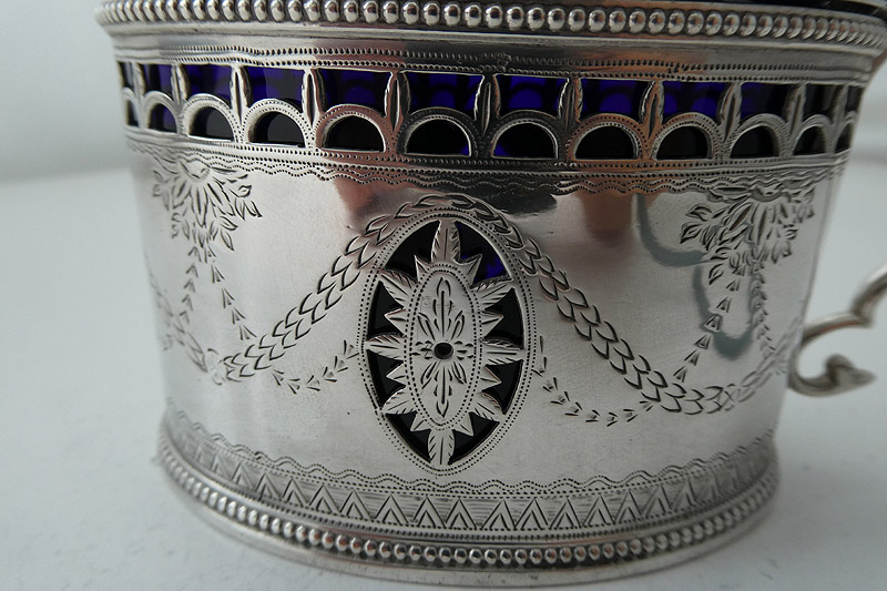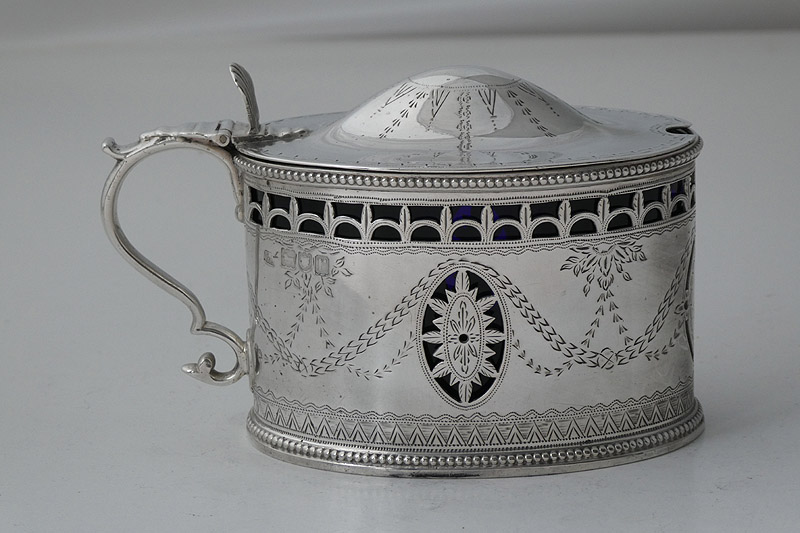 A mustard pot with gadrooned border and engraved body, London 1866 by Edward and John Barnard. Price: £340.00 |