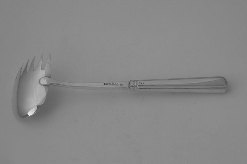 A George III Old English Thread handled server with a bowl set at right angles and ending in tines made in London in 1802 (the handle by John Thornton and the bowl by John Sheckleton). Price: £525.00