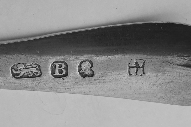 | A Hanoverian teaspoon by HB, perhaps Henry Bickerton, London circa 1765 initialled {AC}. Price: £22.00 |