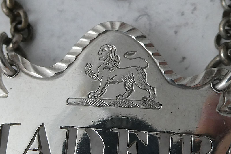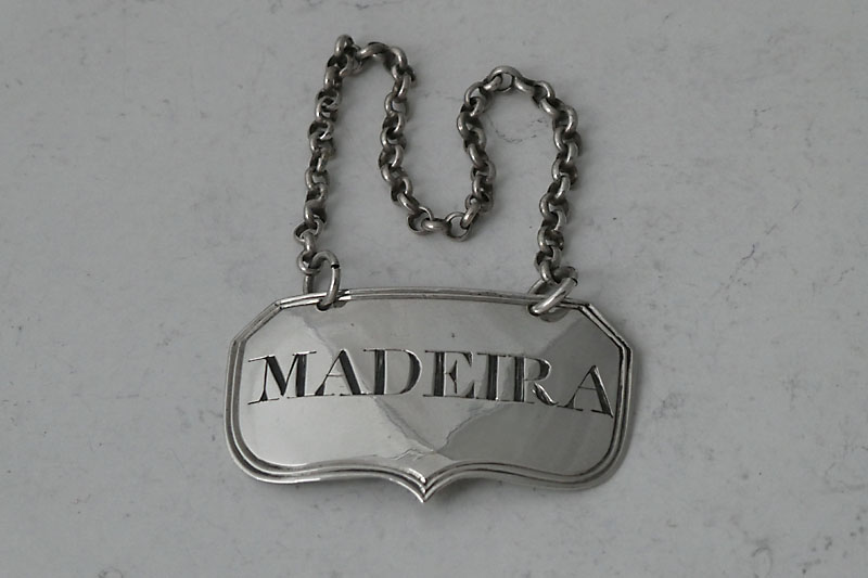 A wine label with canted corners engraved for MADEIRA, by George Lowe II Chester 1828 . Price: £450.00 |