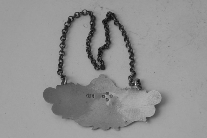 An engraved wine label formed as a S (for SHERRY), by Charles Rawlings and William Summers London 1849 . Price: £130.00 |