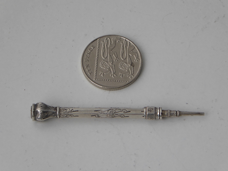 A small Victorian propelling pencil, unmarked circa 1860 . Price: ![]() |