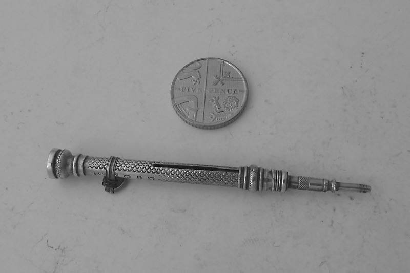 A George III porte-crayon engraved with a ruler on one side made in Birmingham circa 1800 by Samuel Pemberton. Price: